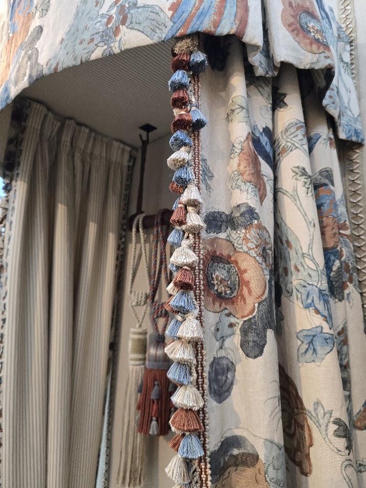 Haywoods Trimmings was established in 1992 with the aim of personalising traditional French passementerie (trimmings) methods to create braids (e.g. gimp, narrow, wide), fringes (e.g. ball, bullion, cut, tassel), tiebacks (e.g. rope, tassel), that are tailor made to the client’s specific aesthetic and colour choices.